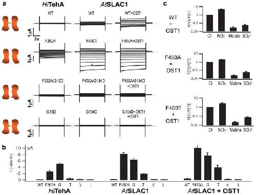 Negi, CO2 regulator SLAC1 and its homologues are essential for anion homeostasis in plant cells. 2008, Pubmed