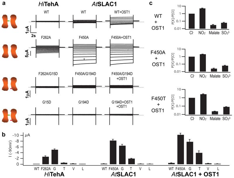 Homologue structure of the SLAC1 anion channel for closing stomata in leaves.