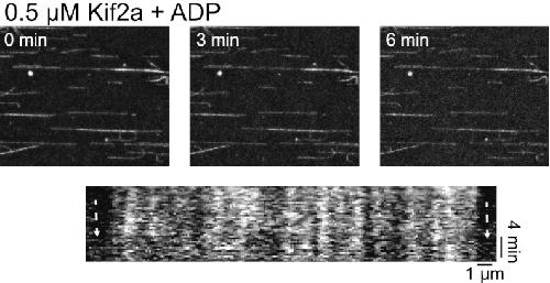 Figure 4—figure supplement 3. Kif2a is regulated by importin.In vitro depolymerization of taxol-stabilized MTs by kif2a requires ATP. MTs show no sign of depolymerization from the ends compared to Figure 4C in the presence of ADP.DOI: http://dx.doi.org/10.7554/eLife.00290.014 |