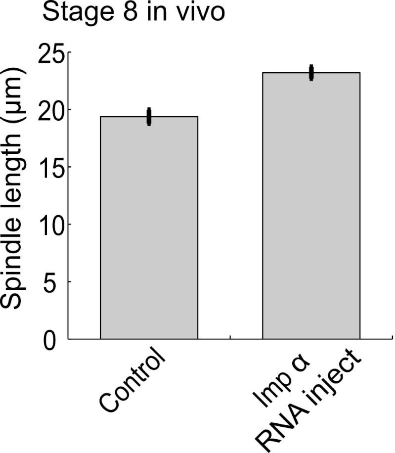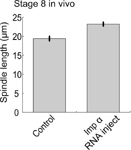 Figure 5—figure supplement 1. Importin α overexpression increases spindle size in stage 8 embryos.Mean ± SE, n ≥ 65 spindles, p<0.0001 by unpaired t-test.DOI: http://dx.doi.org/10.7554/eLife.00290.017 |