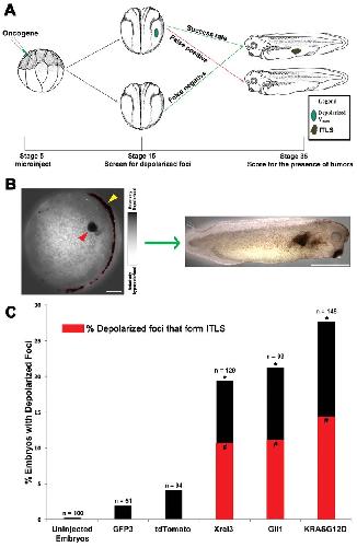 Transmembrane voltage potential is an essential cellular parameter for the detection and control of tumor development in a Xenopus model.