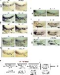 Figure S6.B. Vegfa hypomorph embryos and Vegfa-MOi6e7 morphants phenocopy the Eto2 morphants, related to Figure 6. (B) Vegfa medium/long isoform morphants (Vegfa-MOi6e7) recapitulate the Eto2 morphant phenotype in the DA. WMISH analysis of hematopoietic (Gfi1, Gata2) endothelial (Flk1, CD31), arterial (Cx37 and Notch4) and hemangioblast (Scl, Flk1) markers reveals that endothelialisation, arterialisation and hematopoietic specification do take place in the morphant DA (red arrowheads). Note, however, the absence of ISVs (AA4, uncleared embryos, brackets), the weak staining of the PCVs (black arrows) and the limited development of the trunk vasculature (yellow arrows) in the Vegfa-MOi6e7 morphants. Numbers at the bottom of the panels indicate the number of embryos with the given phenotype out of the total number examined. Whole mounts are shown with anterior to the left and dorsal to the top. Red arrowheads, DA; black arrows, PCV; brackets, ISVs; pink arrowheads, DLP; yellow arrowheads, VBI; dark blue arrowheads, Scl expression in the neural tube; green arrowheads, Flk1 expression in the trunk endothelium; light blue arrowheads, notochord; yellow arrows, trunk vasculature. Numbers at the bottom of the panels indicate the number of embryos with the given phenotype out of the total number examined. Whole mounts are shown with anterior to the left and dorsal to the top. |