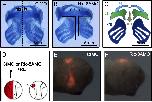 Fig. 2. Ric-8A function displays a cell-autonomous behavior and is required for proper craniofacial development in Xenopus embryos. (A) Ventral view showing cartilage of a stage 42 embryo injected with the control morpholino (CtMO). (B) Ventral view showing cartilage of a stage 42 embryo injected with the Ric-8AMO. (C) Schematic drawing of the ventral cartilaginous elements of a normal tadpole. The embryo images are representative of three independent experiments analyzing 30 embryos injected for each condition analyzed. Abbreviations: nis, non-injected side; is, injected side; Ir, infrarostralcartilage; M, Meckel cartilage; CH, ceratohyalcartilage; CB, ceratobranchial cartilage and BH, basihyalcartilage. (D) Schematic drawing of the transplantation procedure used to assess cranial NC migration in vivo. (E) Cranial NC cells transplanted from embryos co-injected with the CtMO and rhodamine dextran (RD) display a normal migratory pattern. (F) Cranial NC cells transplanted from embryos co-injected with the Ric-8AMO and RD remain in the dorsal region of the embryo. The embryo images are representative of two independent experiments analyzing 15 embryos injected for each condition analyzed.