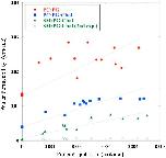 . Linear fits to the data are shown to guide the eye.