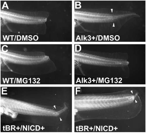 Figure 4. Activation of BMP or Notch Signaling Pathways during the Refractory Stages Promotes Regeneration of Tail TissuesNontransgenic .