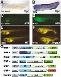 (A) Wild-type (WT) tadpoles as controls for transgenics. No regeneration of tail tissues from the stump has occurred.