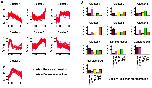 Figure 5. Comparison of TF expression clusters for Drosophila melanogaster and Anopheles gambiae.(a) The expression profiles of the cluster pairs. The gray vertical line indicates the onset of gastrulation. The plot in the third column shows the values of the centers of the clusters at each of the common time points. Orange is Drosophila melanogaster and blue is Anopheles gambiae. (b) Dendrogram showing hierarchical clustering of the clusters. (c) TF family representation in each cluster. The dark gray represents Drosophila melanogaster and the light gray Anopheles gambiae. Blue stars signify statistically significant over-representation of a TF family in a cluster pair; red stars signify statistically significant under-representation of a TF family in a cluster pair. (d) Clusters that were not paired.