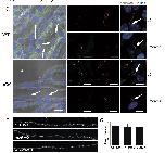 Supplementary Figure 7. Human ANKS6 mutations (a) Chromatograms of six different ANKS6 mutations that were found in individuals with nephronophthisis. Family number, mutations and predicted translational changes are indicated. Sequence traces are shown for mutations above normal controls or heterozygous carriers. Mutated nucleotides are indicated by arrowheads. A delta indicates a 3-bp deletion in wild type sequence of A649-21. (Hom) denotes homozygous mutations. (b) Ultrasound investigation of the kidneys in patient B6794. The right kidney has increased echogenicity compared with surrounding liver parenchyma. A macrocyst is indicated by the arrow. The left kidney exhibited several small cysts (arrows) in the cortex and the medulla. With permission of Dept. of Radiology, Aarhus University Hospital, Aarhus, Denmark. (c) Co-immunoprecipitation of V5 tagged rat Anks6 or the missense mutant Gln441Arg (Anks6Q433R) by Flag tagged INVS, NPHP3 and NEK8. The muta- tion did not influence the binding of Anks6 with NPHP proteins. (d) Overexpression of Venus tagged rat Anks6 in IMCD3 cells. Both Anks6 and Anks6Q433R (green) localized to the cilium visualized by co-staining of acetylated tubulin (magenta). Scale bars; 10 μm. |