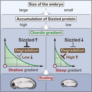 Scaling of dorsal-ventral patterning by embryo size-dependent degradation of Spemann's organizer signals.