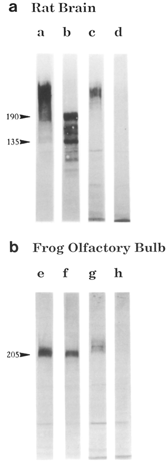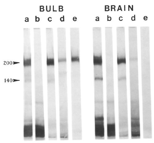 control olfactory bulb preparations (lane b). Similarly, the 161-depleted preparations (lane c) as well as the normal rabbit sera-immunoabsorbed