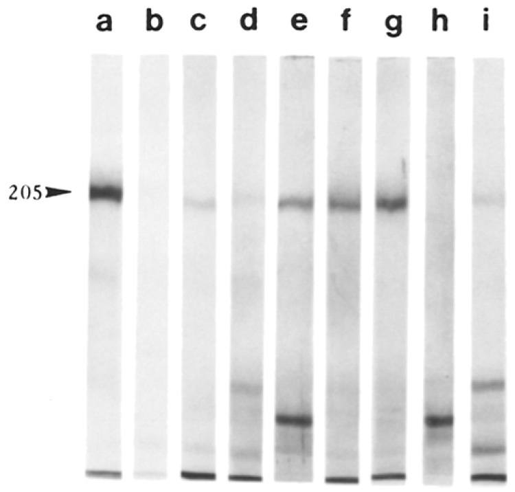 albeit very weakly, to a 210-kD band. |