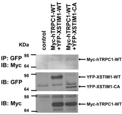 Ong, Dynamic assembly of TRPC1-STIM1-Orai1 ternary complex is involved in store-operated calcium influx. Evidence for similarities in store-operated and calcium release-activated calcium channel components. 2007, Pubmed