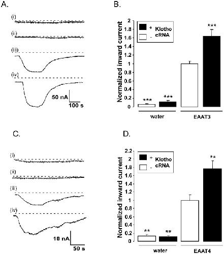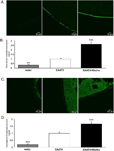 Klotho sensitivity of the neuronal excitatory amino acid transporters EAAT3 and EAAT4.