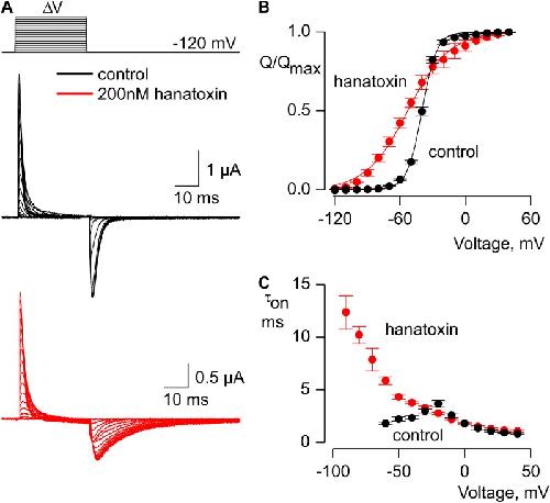 Phillips, Voltage-sensor activation with a tarantula toxin as cargo. 2005, Pubmed