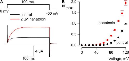 Lee, Interaction between extracellular Hanatoxin and the resting conformation of the voltage-sensor paddle in Kv channels. 2003, Pubmed , Xenbase