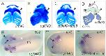 Figure 7. Hierarchical relationships between eg5 and ihh cell signaling pathway genes. AâH: Dorsal view of embryos. Injected side is indicated by an arrowhead. Anterior side is on the left. eg5 mRNA-injected embryos show increased expression of neural crest marker foxd3 (A) and eg5MO-injected embryos show inhibition of foxd3 (B). C, D: ihhMO-injected embryos show inhibition of foxd3 expression (C). The coinjection of ihhMO and eg5 mRNA rescues foxd3 expression on neural crest (D). E, F: gli3MO strongly reduces foxd3 marker (E), and this effect is not rescued by the coinjection of eg5 mRNA (F). G, H: The coinjection of ihh mRNA cannot rescue foxd3 inhibition caused by eg5MO (G). The effect of eg5MOwas rescued by the coinjection of gli3 mRNA (H). The results suggest that eg5 is downstream of ihh and upstream of gli3 in the genetic cascade that controls neural crest specification.Download figure to PowerPoint |