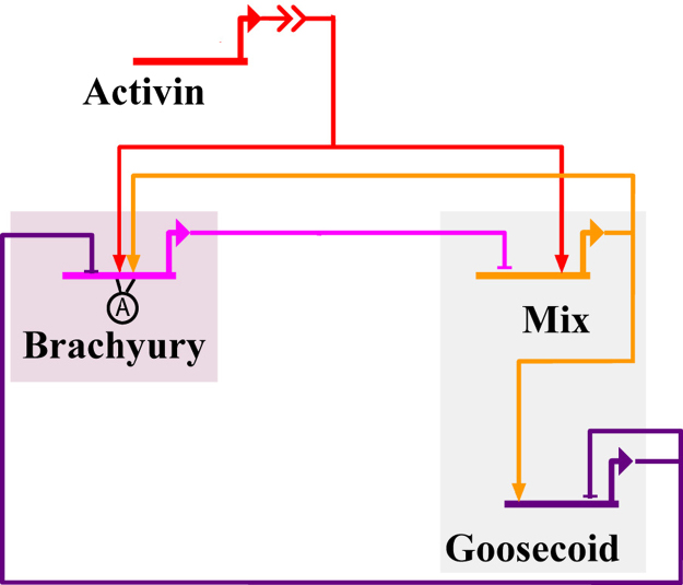 A genetic regulatory network for Xenopus mesendoderm formation.