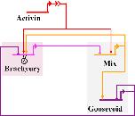 Fig. 3. The axolotl in vitro network: Nodal signalling is simulated by bathing either whole or dissociated animal caps in Activin. Note that this network is identical to the simplified Xenopus in vitro network, except that Mix is required here for the expression of Brachyury.
