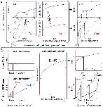 Figure 6. Differences among models.Hypothetical stress (left), creep compliance (middle), and deformation (strain, ε; right) in the tissue. (A) The generalized model (Model 1) assumes the relative timing (ô) and the strains, of all events (1, 2, 3,…) are independent of temperature (cool (blue) vs warm (red)), as in a movie played faster. The generalized model does not specify the developmental course of strain or stress, only that timing scales with temperature. The generalized model predicts how stress and compliance vary together as temperature changes (Model 1, eqn.16). (B) Step and ramp models (Models 2A & 2B). The step and ramp models assume morphogenetic stresses are stepped (top) or ramped (bottom) with time. For a step stress (upper), the change in tP with temperature does not affect the time tC to reach strain εC (when the blastopore closes) because peak stress and compliance are unchanged (Model 2A, eqns. 21–22). A ramp is the sum of stress increments (gray lines; bottom left). Stress timing (hence the slope of the ramp) scales with tP, and therefore with temperature (red, warm; blue, cool). The time tC varies with tP (and therefore temperature) for the ramp model (upper; Model 2B, eqns. 25–26), because strain increments follow the change in timing of stress increments (gray lines). |