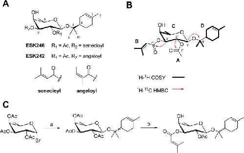 natural products ESK242 and ESK246. (B) Crucial NMR correlations used
