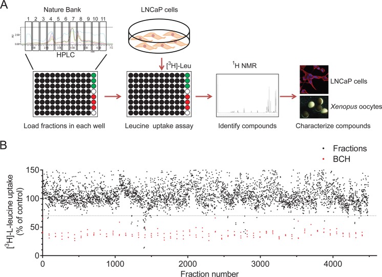 assays. (B) A leucine uptake assay was used to screen 4488 fractions