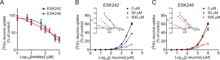 Figure 4. ESK242 and ESK246 inhibit LAT3 via a mixed mode of inhibition.