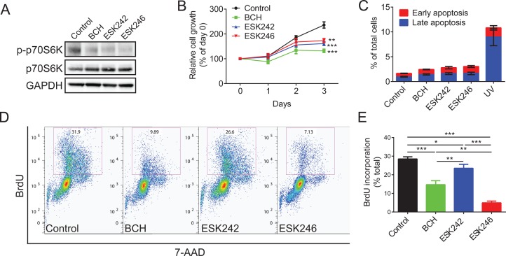 BCH (10 mM), ESK242 (50 μM), and ESK246 (50 μM). (D,E)