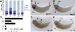 spry4 (sprouty homolog 4) gene expression in Xenopus laevis embryonic hindlimb, assayed via in situ hybridization, NF stage 53, proximal to the left and posterior uppermost, with the tadpole on right. |