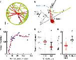 Figure 2. Behavioral experiments in freely-swimming tadpoles. (A) Trajectories of the tadpole and the visual stimulus over the course of one experiment; small dots represent points of avoidance maneuver initiation. Scaled images of a circle and a tadpole are superimposed on their respective trajectories. (B) A summary of the parameters measured for every collision (see 2 for a detailed description; R.-C. offset stands for rostro-caudal offset). (C) Escape probability as a function of visual stimulus maximal angular size during the collision event; each square represents an average of 29 events and the red line is a fourth degree polynomial fit. (D) One of the pair-wise comparisons between escapes in response to stimuli of different size. Gray circles represent data from individual collision events, boxes and whiskers show medians and interquartile ranges, and the asterisk marks statistical significance (P < 0.05). Tadpoles escaped from smaller circles at a faster speed than from larger ones. (E) Relative efficacy (probability of triggering an avoidance maneuver, normalised over the individual responsiveness of each animal), as observed in freely-swimming tadpoles, for dark circles either colliding with the animal, or instantaneously appearing near it.
