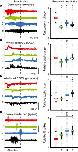 Figure 5. Role of excitation in inhibition in looming stimulus selectivity. (A) Effect size (difference between responses to ‘crash’ and ‘flash’, divided by trial-to-trial variability) observed at different stages of information processing in the tadpolebrain. Left to right: recordings in the optic nerve (Eye), GABAergic inputs to OT cells (GABA), glutamatergic inputs to OT cells (Glu), and OT cell spike output (Spikes). Asterisks mark effects that are significantly larger than zero. (B) Predictions of cell spike output that are based on amplitudes of synaptic excitation and inhibition (circles) match actual median normalised spike output (black squares) better than those based on excitatory inputs alone (triangles). Stimuli were normalised by the average response across all stimulus types (similarly to Fig. 4). See details in the text. (C) Average synaptic responses to different visual stimuli, normalised by total synaptic charge, with inhibitory (pale wide line) and inverted excitatory (darker narrow line) curves superimposed. Inhibitory currents are lagging behind excitatory currents for all stimuli. (D) Average positions and values of cross-correlogram peaks for excitatory and inhibitory synaptic currents recorded in OT cells (horizontal axis represents the lag between excitation and inhibition; n = 28; whiskers represent SEM). Responses to ‘flash’ and ‘crash’ are not significantly different (PMW > 0.05). f, ‘flash’; r, ‘ramp’; g, ‘grid; c, ‘crash’.