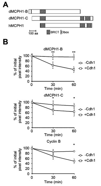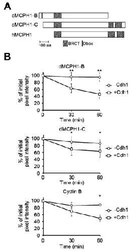The Drosophila MCPH1-B isoform is a substrate of the APCCdh1 E3 ubiquitin ligase complex.
