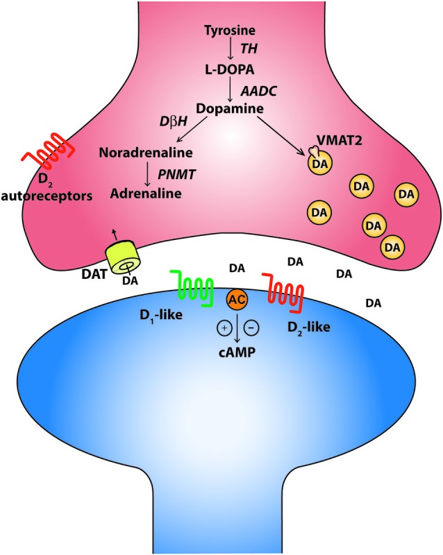 Genes referenced: camp dbh pnmt slc18a2 slc6a3 tbx2 th trhd