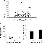 FIG 4 B. dendrobatidis infection does not affect the number of leukocytes present in the spleen (splenocytes) of X. laevis. (A) Splenocyte number positively correlates with size in X. laevis. A significant correlation exists (P = 0.03) between the total body mass of individuals, and the total number of splenic leukocytes. n = 75, R = 0.25; the best fit line is shown. (B) No significant relationship exists between the infection load and relative number of splenocytes (relative to body mass) by regression analysis (all: P = 0.64; infected: P = 0.99). Bd Load, B. dendrobatidis load. (C) There is also no significant difference in the mean number of splenocytes (± the SEM) between individuals that were or were not infected with B. dendrobatidis by two-tailed Student's t test (P = 0.37). The number of splenocytes was normalized (B and C) to the size of each individual by dividing the total splenocytes by the mass in mg of the frog. The Bd load was determined by quantitative PCR using zoospore equivalent standards and log transformed. n = 50 for individuals that were not infected; n = 11 for infected individuals. The mean infection load (± the SEM) for infected individuals was 17.8 ± 0.9 zoospore equivalents.