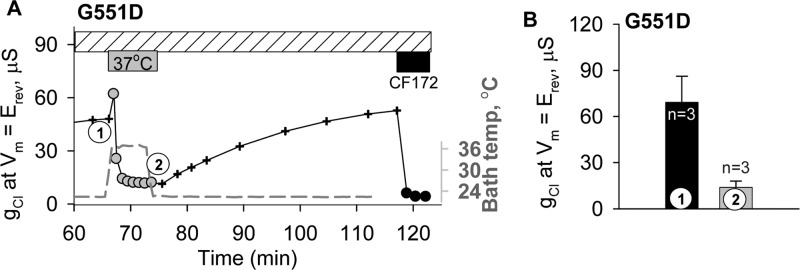 an oocyte expressing G551D CFTR was warmed to 37 °C (gray bar