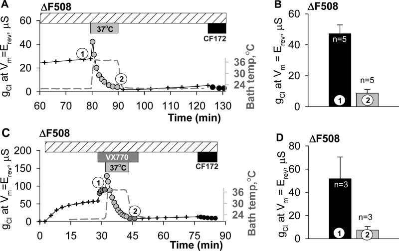 10 μM VX-770 and then warmed to 37 °C (gray bar and circles)