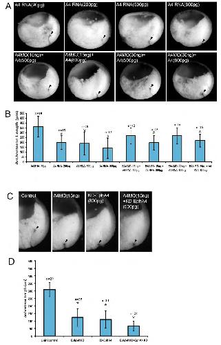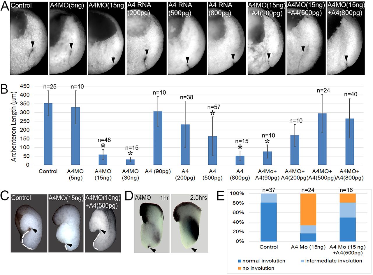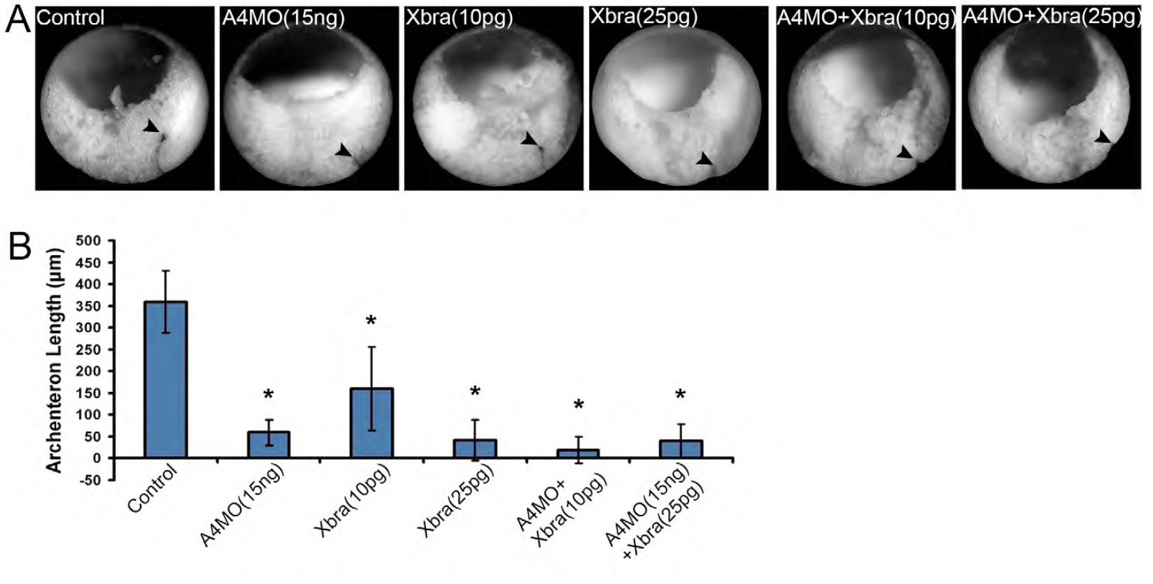 mRNA; doses as indicated. (B) Archenteron length in experiments shown in (A). |