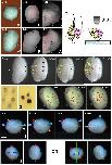 Fig. 11. Geometry of dorsal involution. (A) Involution in context of gastrulation. Top: movements at early and mid-gastrula stages. Yellow, endoderm; red, mesoderm; blue, ectoderm; yellow arrows, vegetal rotation; red arrows, involution; blue arrows, epiboly; green double-arrow, late-stage convergent extension; white arrows, vegetal displacement of lips during blastopore constriction; vertical dashed line, animal-vegetal axis. Bottom: horizontal section at level of horizontal dashed lines in top, dorsal side. Dashed lines connect surface cells 1 and 2 to animal-vegetal axis, over a distance of 500â