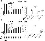 Figure 2. Mefloquine (MFQ) and quinine derivatives (QUO) suppressed (a) Cx26-G45E and (b) -D50N hemichannel currents in Xenopus oocytesSingle cells held at −40mV were repeatedly pulsed with +50mV depolarizations (Vm) and membrane current (Im) was measured. Cells were exposed to 30µM inhibitor for 90sec by switching perfusion solutions after lmin (left, shown for mefloquine). Inhibitors were washed out for 2.5min, showing partial reversibility at the concentration tested. Summary data for inhibitors QU020, QU021, QU022, MFQ, and QU026 are shown as the mean residual instantaneous membrane current during 30µM drug application as a percentage of the pre-drug value (right). MFQ and QU026 produced the greatest inhibition of Cx26-G45E and -D50N membrane currents. Data are the means ± SD.