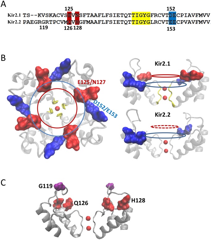 Lack of negatively charged residues at the external mouth of Kir2.2 channels enable the voltage-dependent block by external Mg2+.