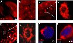 FIGURE 6. Localization of TFIIIA to the nuclear periphery. TFIIIA antibody directly conjugated to Alexa Fluor 568 was used to immunohistochemically stain embryos at the indicated stage of development. A, two-cell embryo. B, midblastula stage (stage 8) embryo. C, late blastula stage (stage 9) embryo. D, midneurula stage (stage 19) embryo. E, nucleus of a midneurula embryo injected with Gam1 mRNA counterstained with DAPI. F, nucleus of a midneurula embryo injected with water and counterstained with DAPI. Images were collected at ×20 magnification unless indicated otherwise. C' and D' are magnifications of the indicated regions of the images in the corresponding panels. |