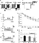 Figure 5. Measurements of phosphatase activity of salamander VSP (Hn‐VSP). (A) Phosphatase activity of Hn‐VSP recorded at 50, 65, and 90 mV. (B) Normalized current amplitudes plotted against time. Data in the plot are mean ± SEM, n = 4, 50 mV (circles), 65 mV (squares), and 90 mV (triangles). (C) Bar graphs for current amplitudes at 3 sec. Error bars are SEM, *P = 0.99, **P = 0.94, ***P = 0.95. |