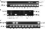 Figure 7. RTâPCR results of the gene expression pattern of CpâVSP and HnâVSP. (A) CpâVSP (upper panel). βâactin for the positive control (lower panel). E, eye; K, kidney; S, spleen; I, intestine; G, gut; M, muscle; B, brain; H, heart; L, lung; O, ovary; T, testis. (B) Expression of CpâVSP in eye and retinal pigment epithelium (RPE), but not in the neural retina (+ or â indicates PCR reaction with or without reverse transcriptase) (C) HnâVSP (upper panel). βâactin for the positive control (lower panel). E, eye; K, kidney; S, spleen; I, intestine; G, gut; M, muscle; B, brain; H, heart; L, lung; O, ovary; T, testis. Arrows indicate band size. |