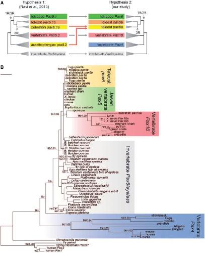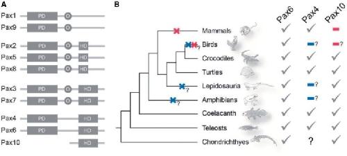 Ravi, Sequencing of Pax6 loci from the elephant shark reveals a family of Pax6 genes in vertebrate genomes, forged by ancient duplications and divergences. 2013, Pubmed