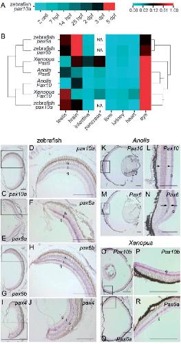 Hoshiyama, Evolution of the gene families forming the Pax/Six regulatory network: isolation of genes from primitive animals and molecular phylogenetic analyses. 2007, Pubmed