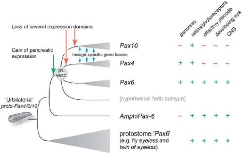 Manousaki, Co-orthology of Pax4 and Pax6 to the fly eyeless gene: molecular phylogenetic, comparative genomic, and embryological analyses. 2011, Pubmed