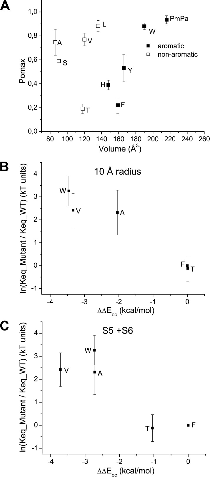 Aromatic-aromatic interactions between residues in KCa3.1 pore helix and S5 transmembrane segment control the channel gating process.