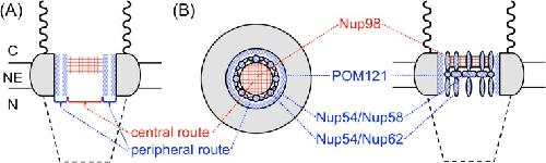 barriers. The filaments and basket of the NPC are shown by wavy and