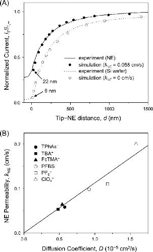 Tip approach rate, 0.30 μm/s. (B) Plot of the ion permeability