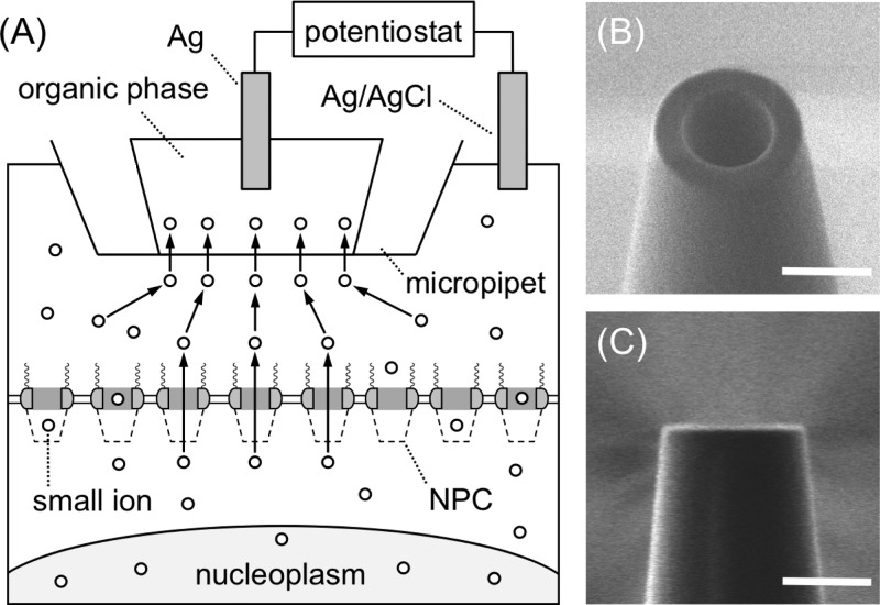 using a micropipet-supported ITIES tip. The nucleus was swollen to
