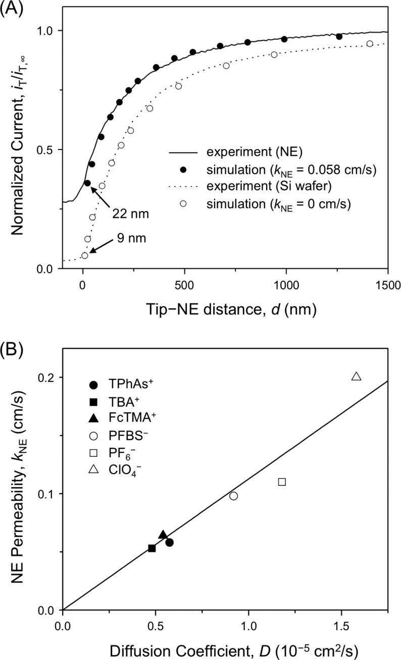 Figure 4. (A) Experimental approach curves for TPhAs+ at the NE